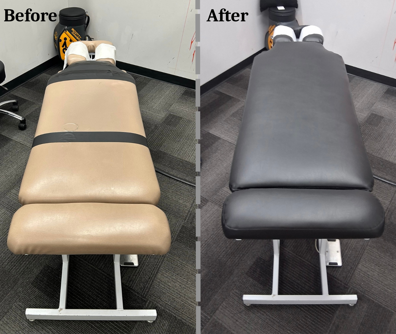 We specialize in restoring chiropractic tables that have seen better days, ripped vinyl, duct tape patches or simply a color change. Whether it’s a simple refresh or a full makeover, we bring tables back to life with care, precision, and purpose.